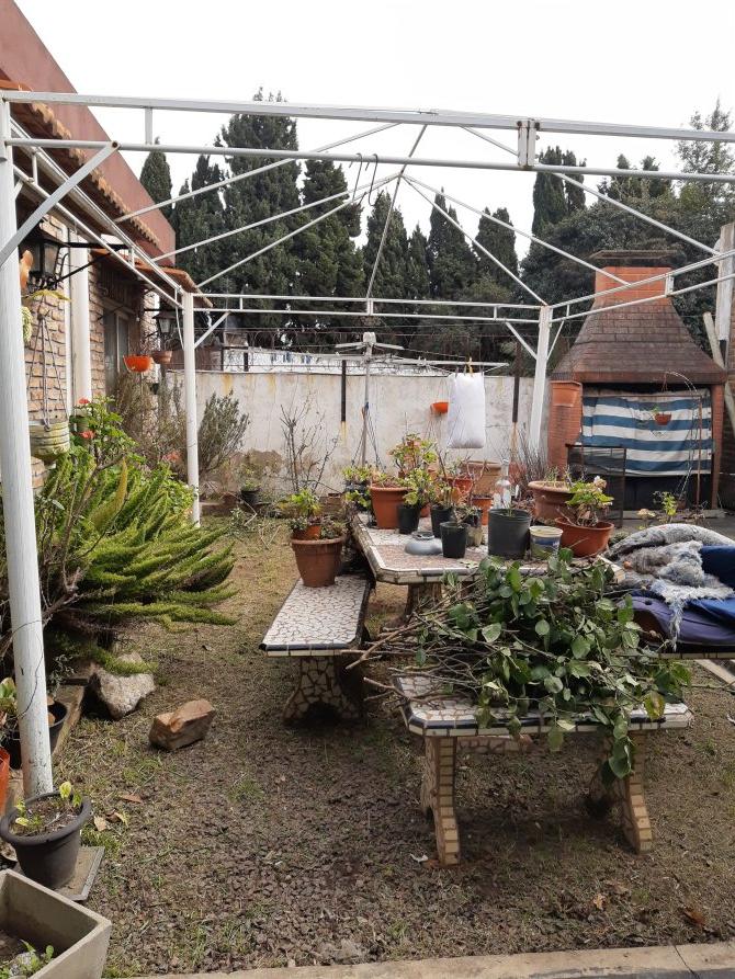 Entrada para auto. Garage. Living. Tres dormitorios. Baño. Cocina pasante con acceso al jardín. Lavadero. Quincho o Cuarto de guardado amplio con ventanas y acceso por el patio que puede funcionar como estudio o un cuarto dormitorio. Patio con parrilla.