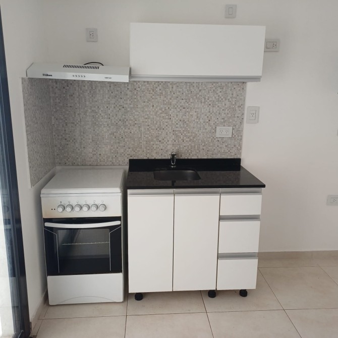 Departamento en alquiler a estrenar. Planta baja con patio. Cochera cubierta.